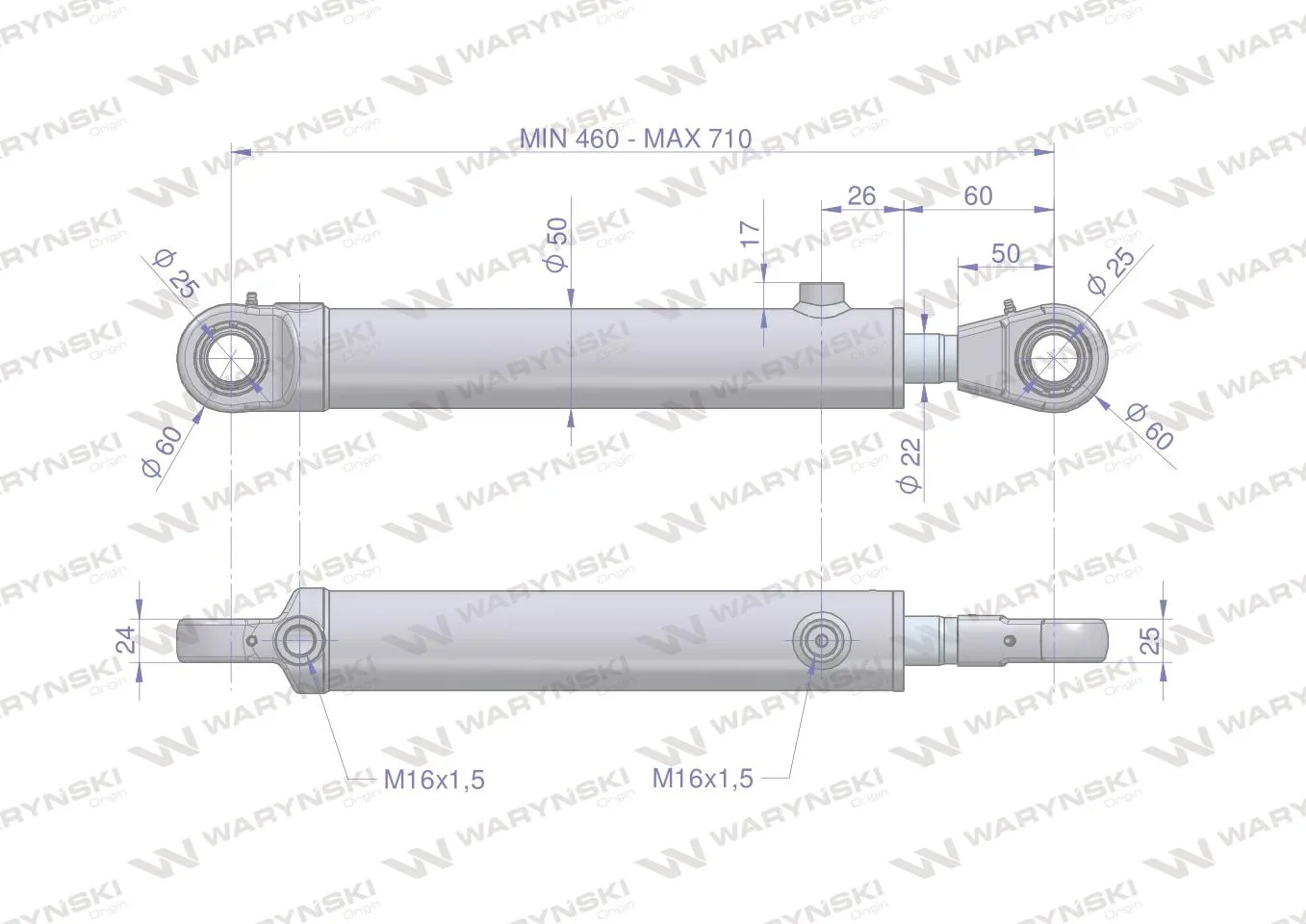 Cylinder hydrauliczny - siłownik dwustronny wysuwu motowideł (5040995390. CJ2F16/40/22/250z. 5040995130) Bizon Waryński