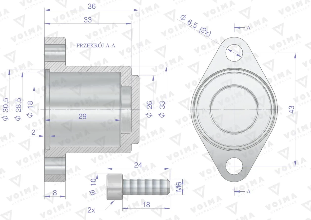 Kołpak rozdzielacza hydraulicznego dolny 40L VOIMA