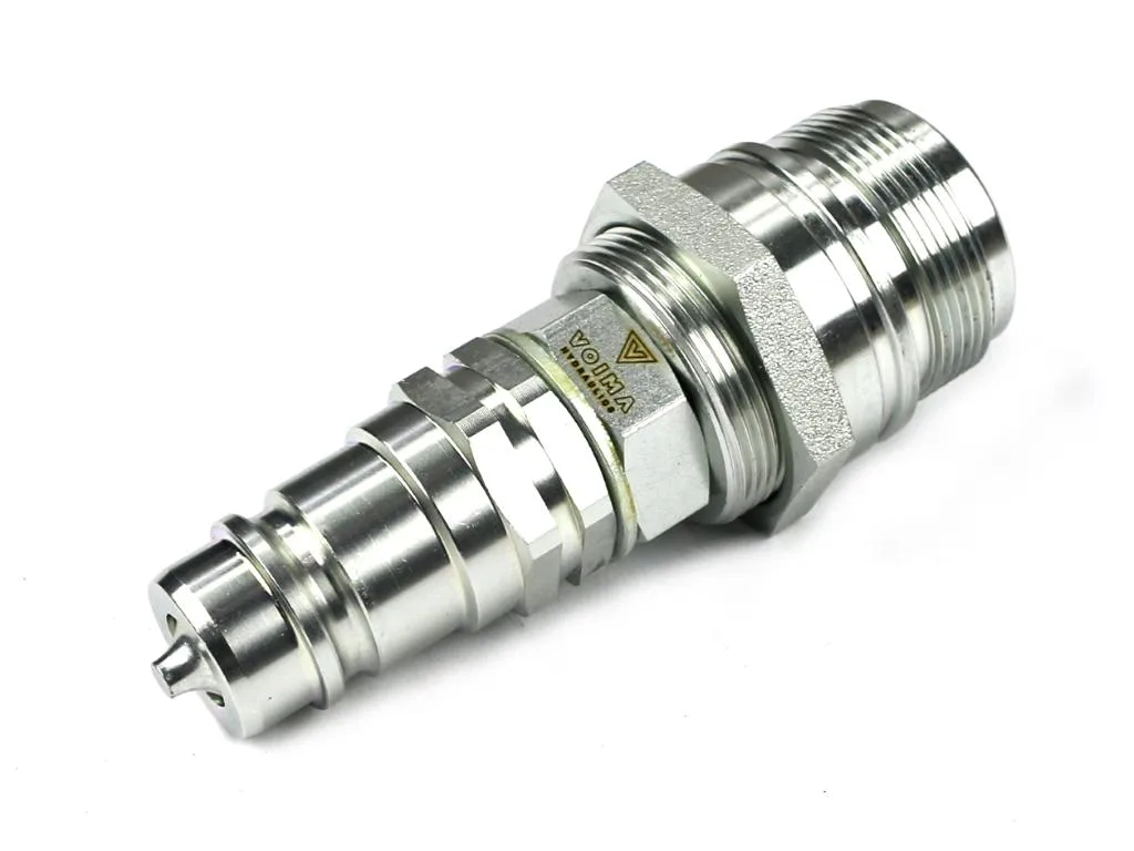 Redukcja ZSR (50492REDUKCJA) gniazdo/wtyczka EURO skręcane VOIMA - z jednej strony zamontowane gniazo skręcane rolnicze starego typu a z drugiej strony wtyczka EURO (ISO-7241-A). Najpopularniejsze zawory redukcyjne hydrauliczne o bardzo szerokim spektrum zastosowań w rolnictwie. Zaprojektowane są zgodnie z wymogami wymiarowymi i jakościowymi, które określają szczegółowo charakterystykę pracy i wymiary. Dzięki zaworom redukcyjnym można łatwo zmienić przyłącze pod wyższy standard szybkozłączy hydraulicznych EURO (ISO-7241-A) w wersji standardowej i wersji Push-Pull.