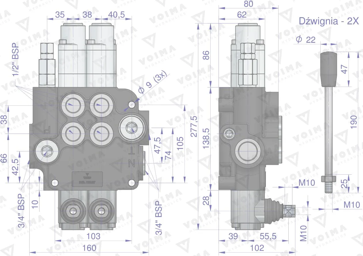Rozdzielacz hydrauliczny 2-sekcyjny 80L (2-sekcje pływające) VOIMA