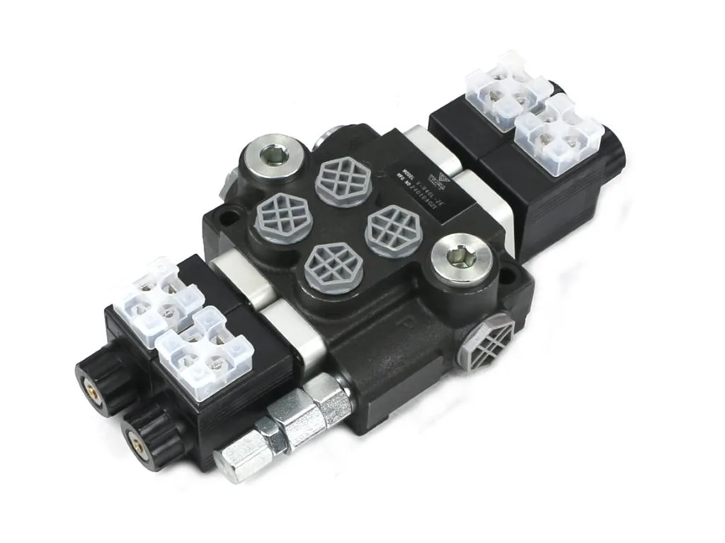 Rozdzielacz hydrauliczny 2-sekcyjny sterowany elektrycznie 12V 40L VOIMA