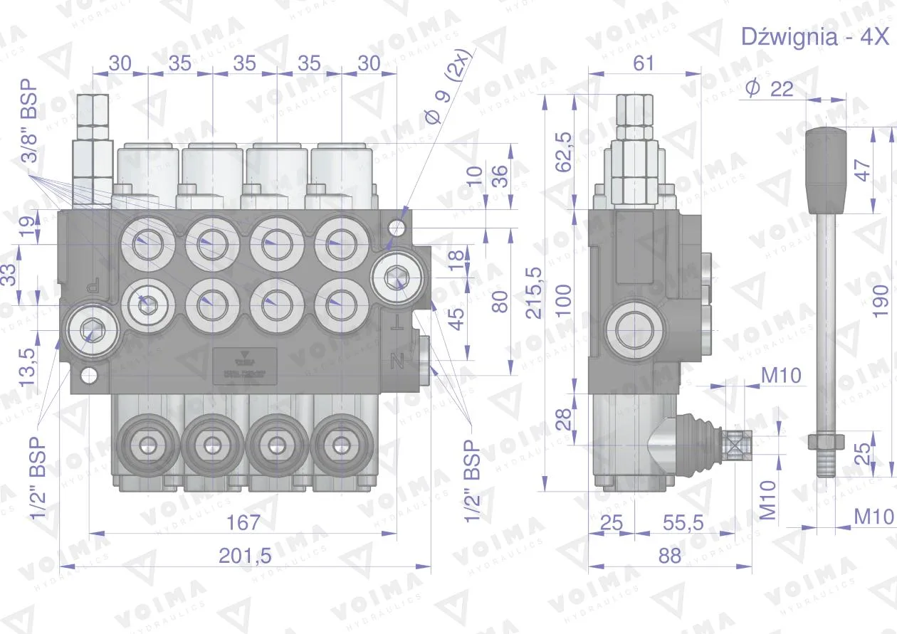 Rozdzielacz hydrauliczny 4-sekcyjny 40L (1-sekcja nurnikowa) VOIMA