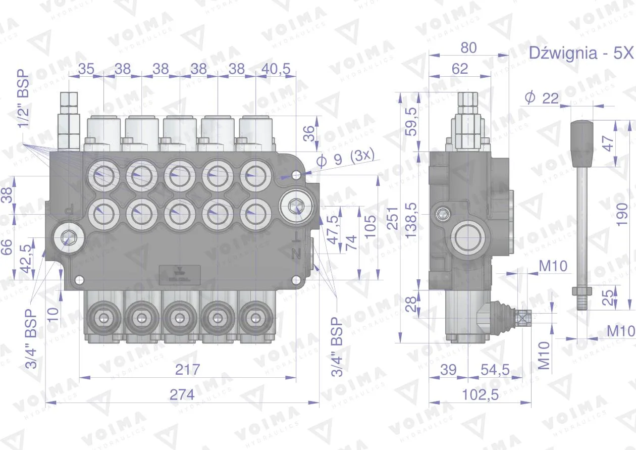 Rozdzielacz hydrauliczny 5-sekcyjny 80L VOIMA