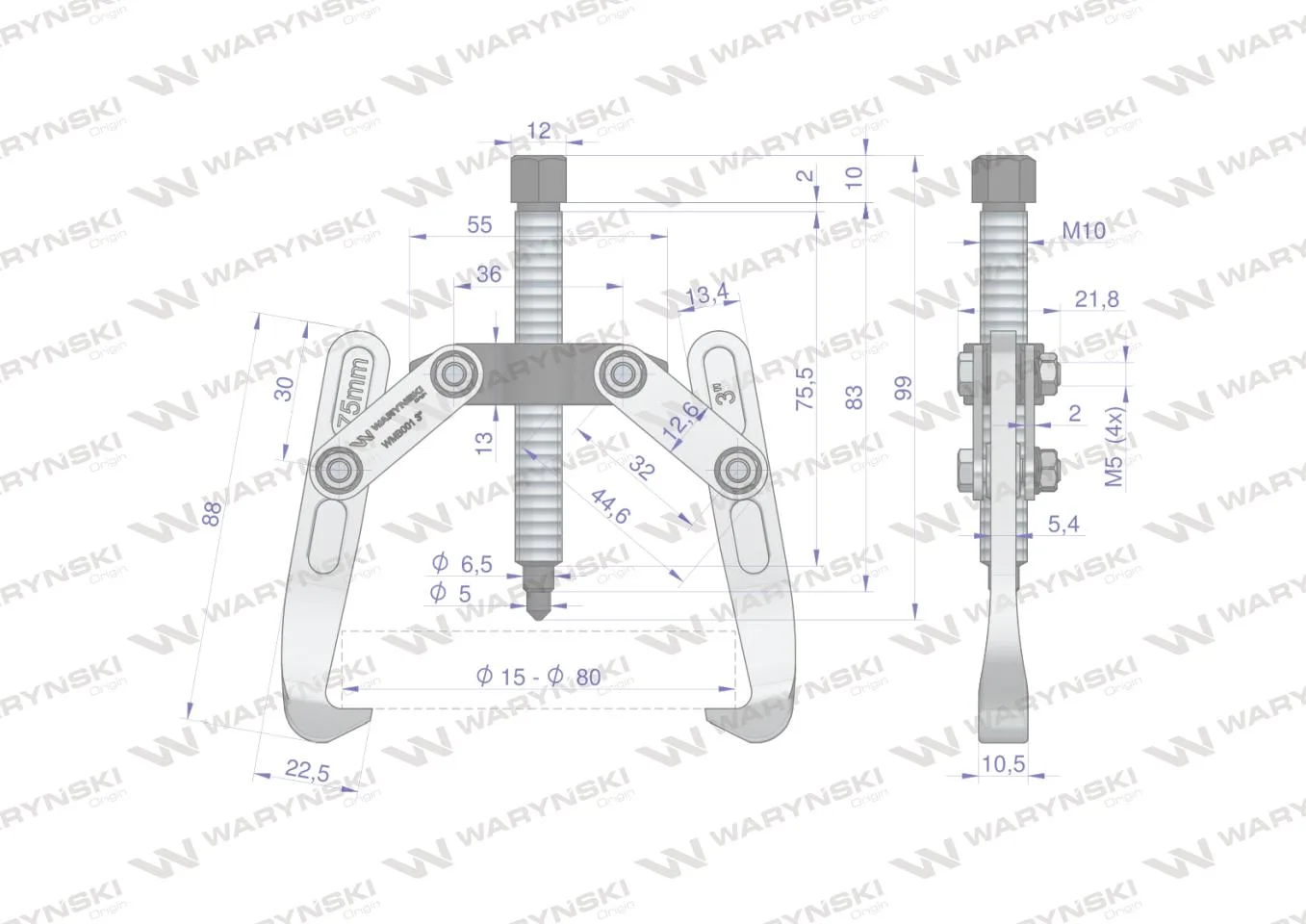 Ściągacz do łożysk dwuramienny o rozstawie hartowanych ramion roboczych 15-80 mm Waryński