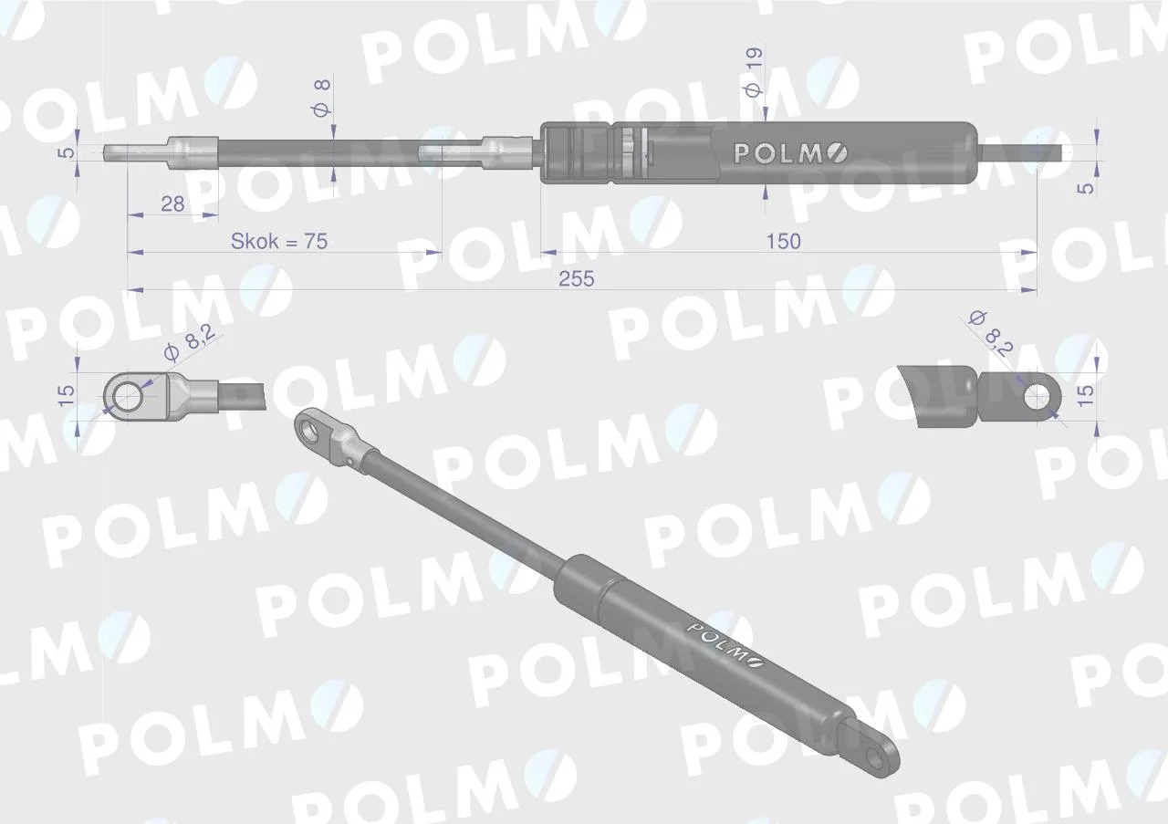 Siłownik szyby przedniej Szyberdachu L max. 255mm 1427157M90P 1427157M91 MASSEY FERGUSON SAME LANDINI POLMO