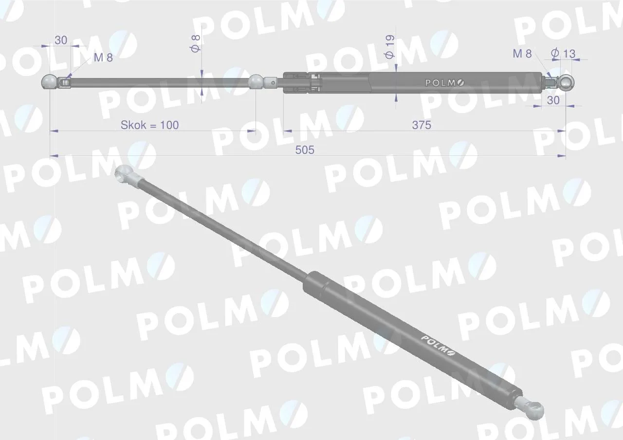 Siłownik szyby przedniej tylnej drzwi L max. 505mm 4402638P DEUTZ LAMBORGHINI SAME POLMO