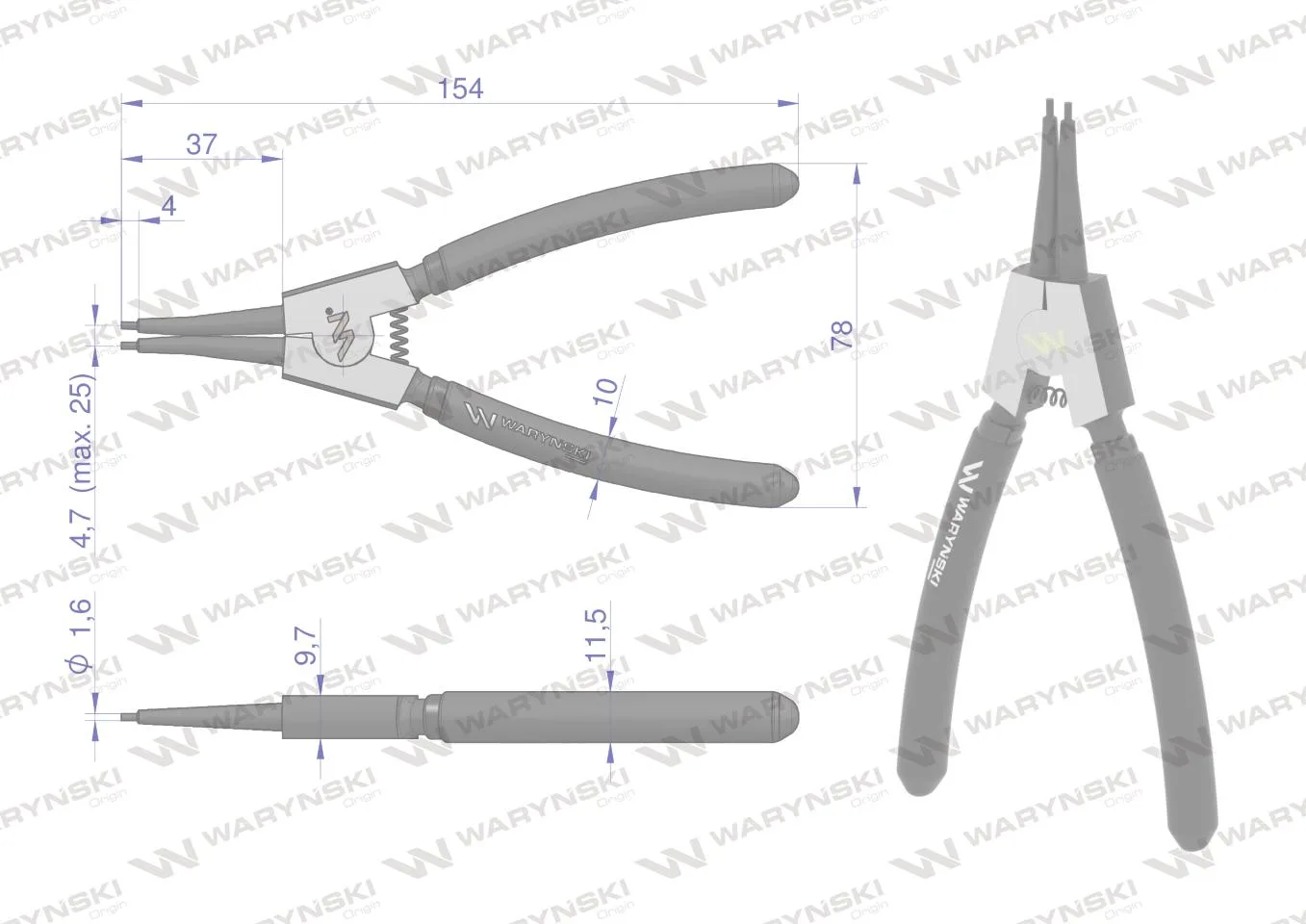 Szczypce do pierścieni osadczych 150 mm zewnętrzne proste Waryński