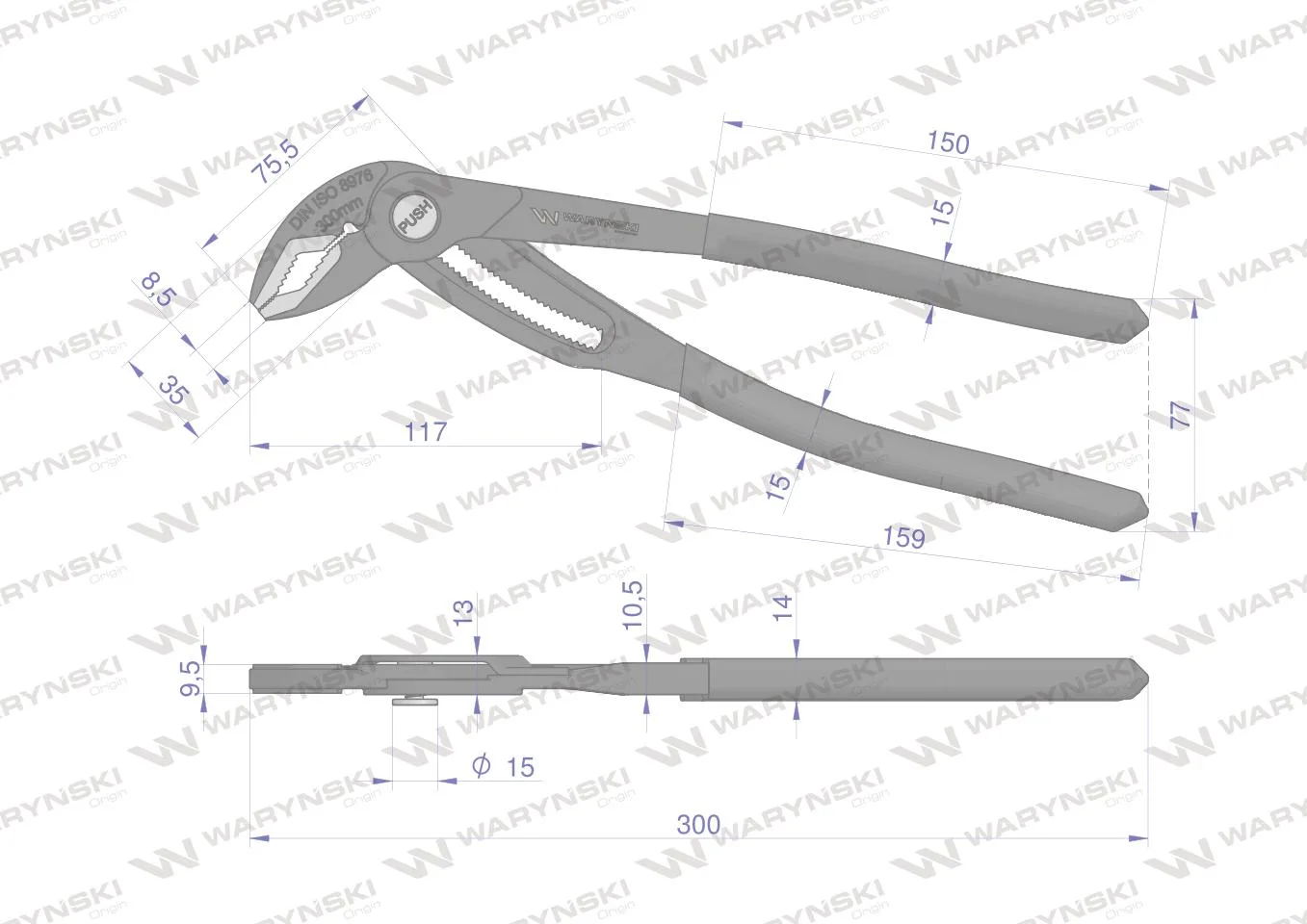 Szczypce do rur szybkonastawne 300mm. zakres szczęk 70 mm Waryński z wygodnym przyciskiem zmiany nastawu, maksymalna średnica rury 2 3/4 cala"