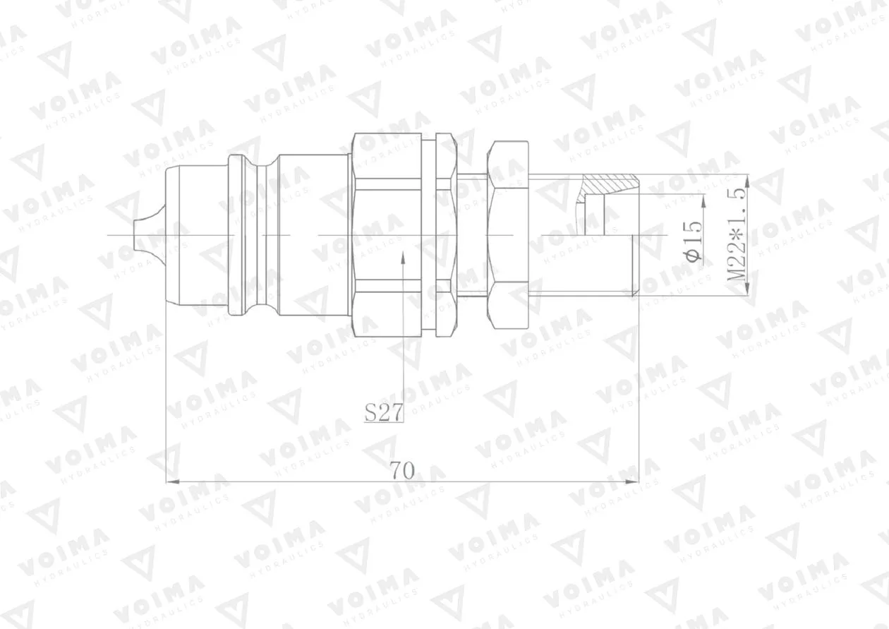 Szybkozłącze hydrauliczne wtyczka EURO M22x1.5 GZ long (9100822LW) VOIMA (opakowanie 50szt)