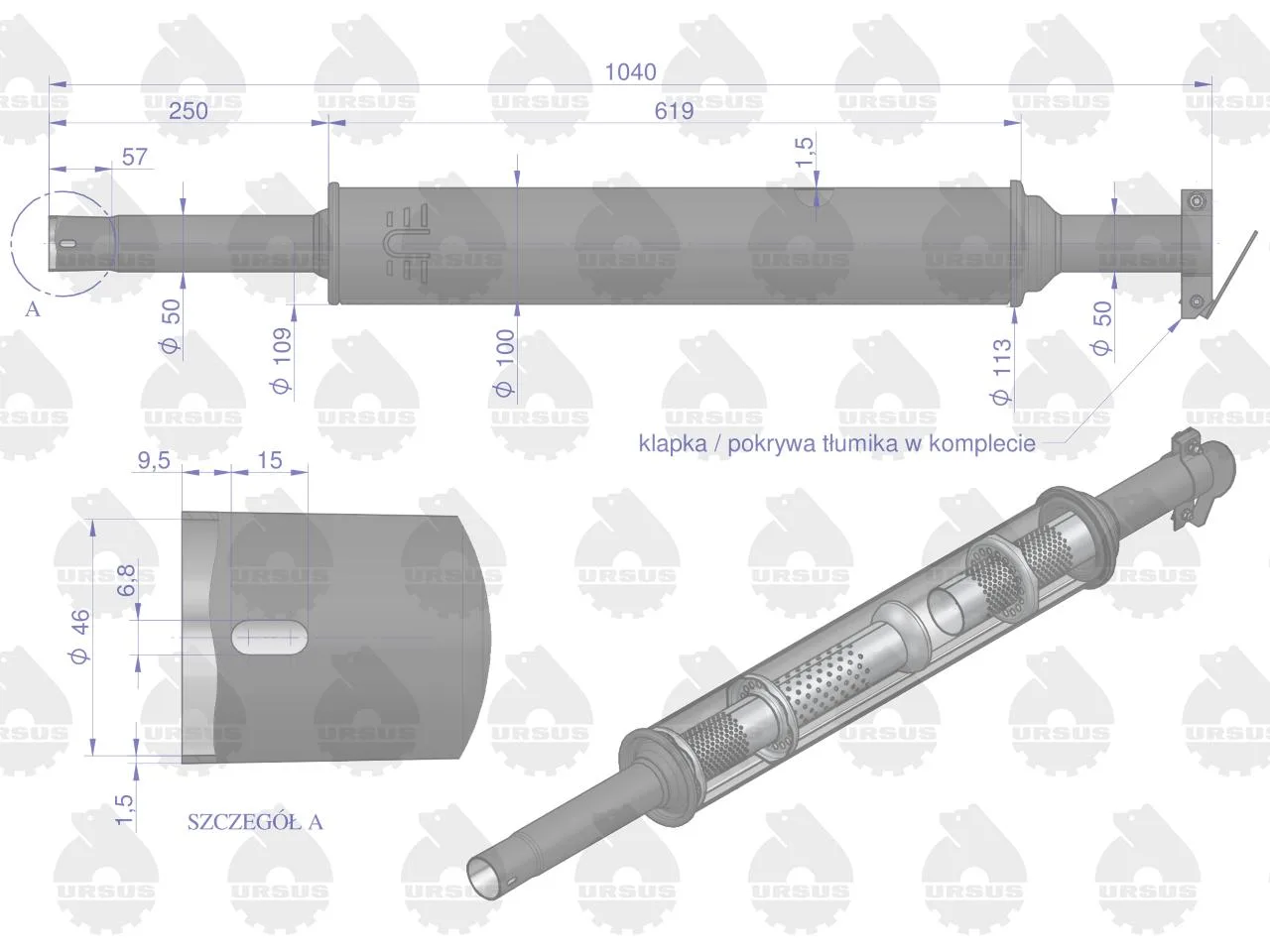 Tłumik okrągły 1040mm 5,3kg C-360 (prosty) ORYGINAŁ URSUS
