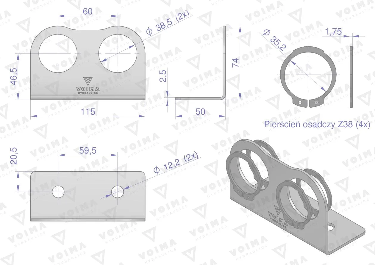 Uchwyt podwójny kompletny z pierścieniami segera dla szybkozłączy EURO Push-Pull VOIMA