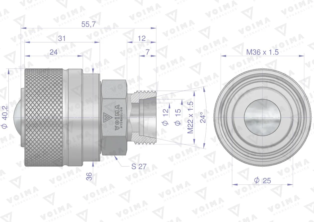 Zawór wtyczka ZSR (50490030) M22x1.5 skręcane VOIMA