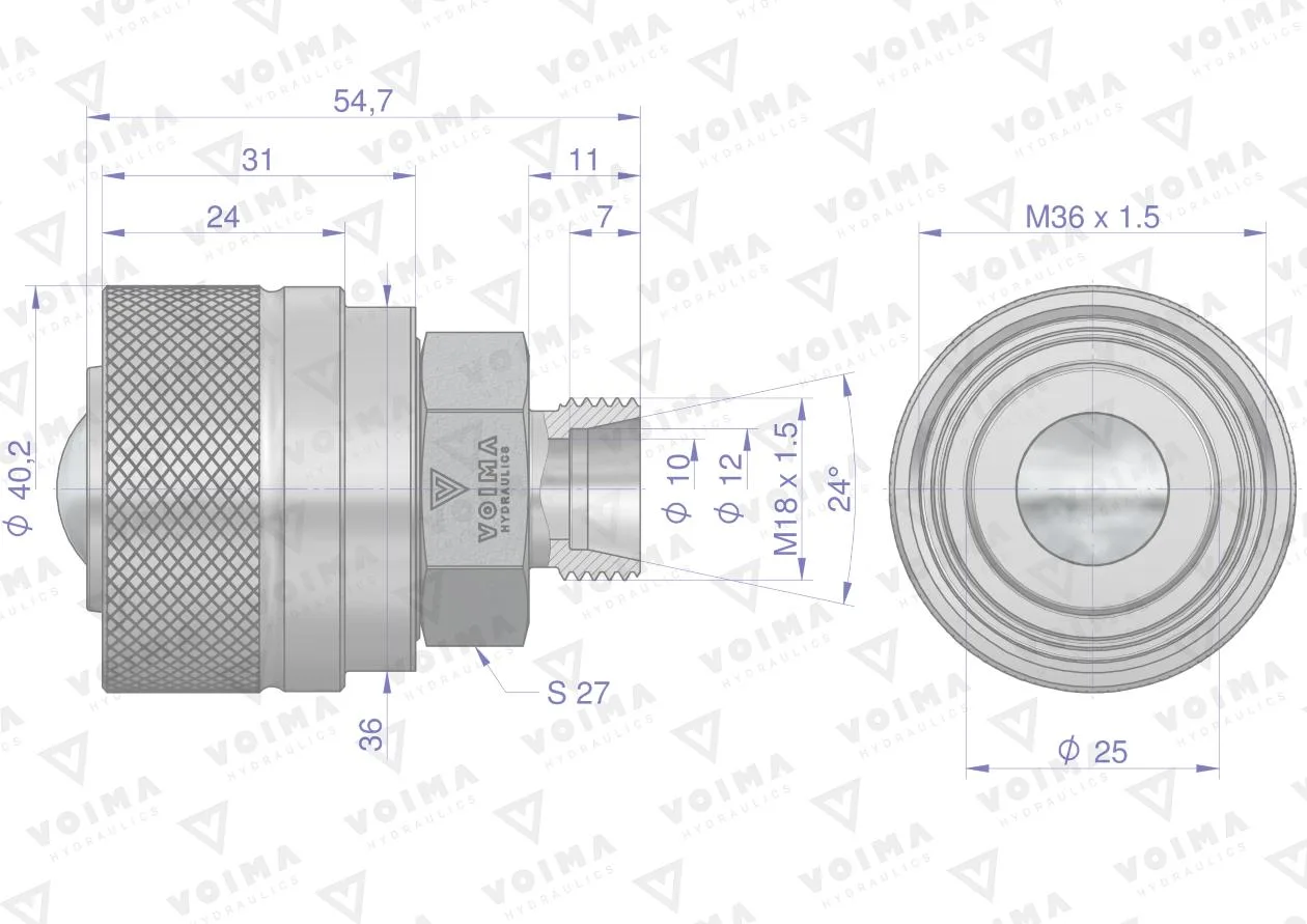Zawór wtyczka ZSR6160102 (pasuje do Bizon) M18x1.5 skręcane VOIMA