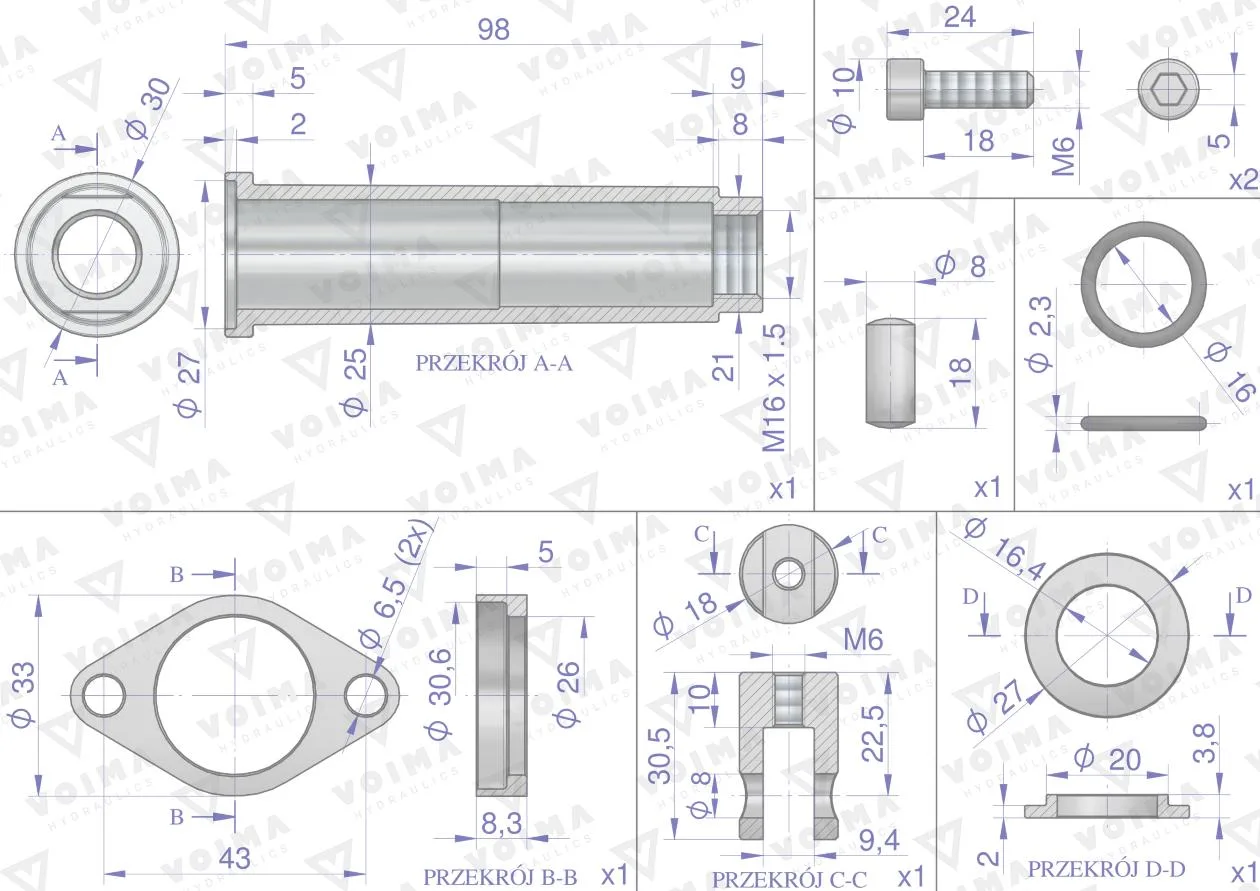 Zestaw (kit) do rozdzielacza hydraulicznego 40L - mocowanie linki VOIMA