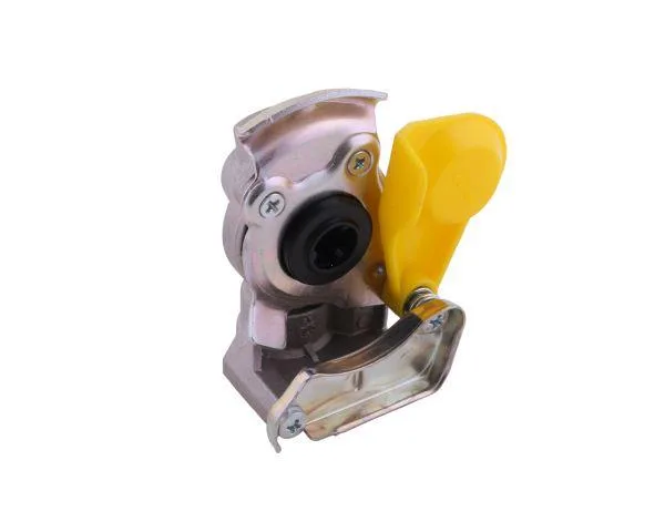 Złącze przewodów powietrznych miękkie żółte, można zastosować przy połączeniu ciągnik-przyczepa, samochód ciężarowy-przyczepa, lub do połączenia samych przewodów.